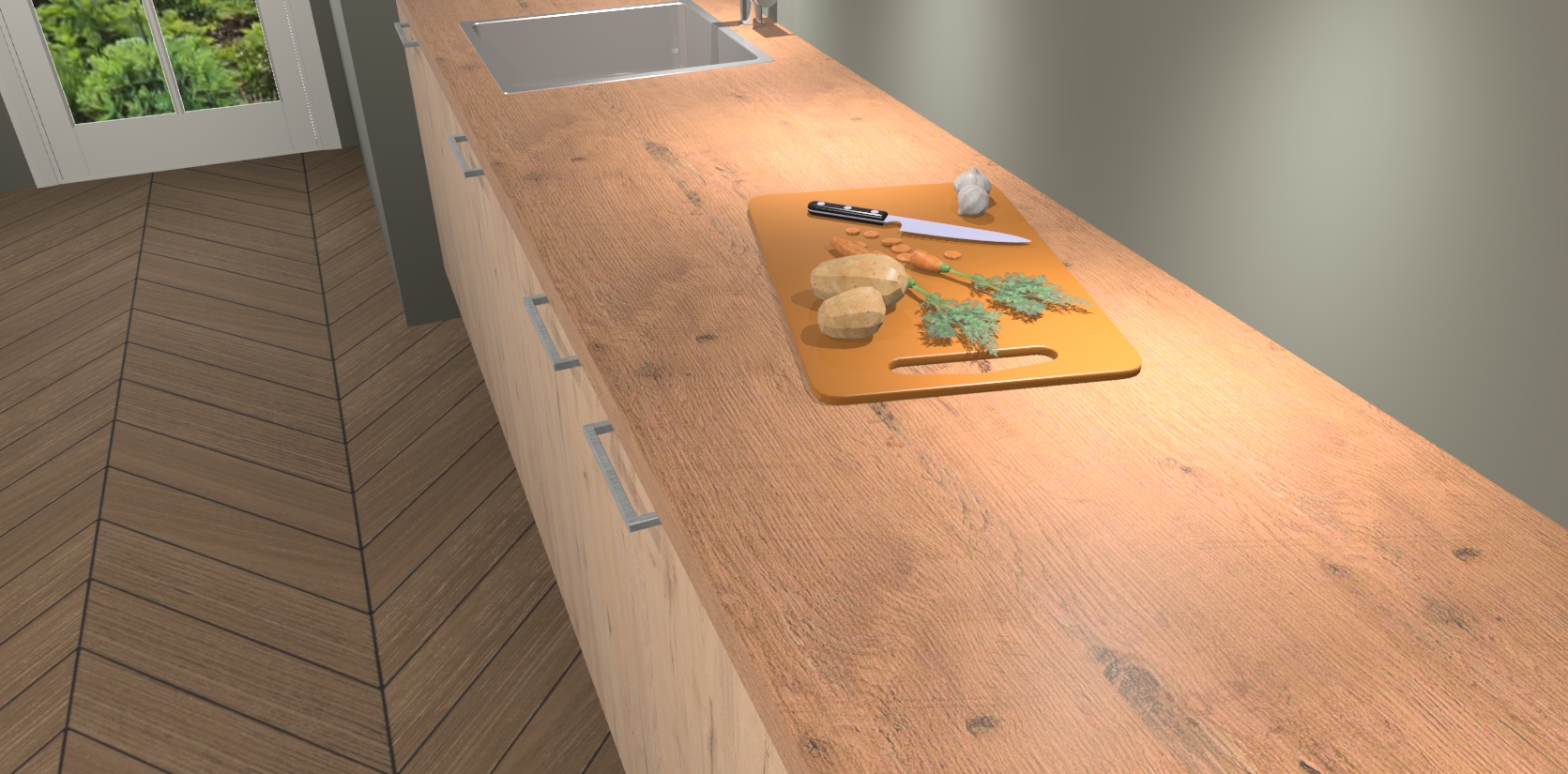 - Bij een hoekwerkblad zijn de hoeken in gevreesd en op maat gemaakt