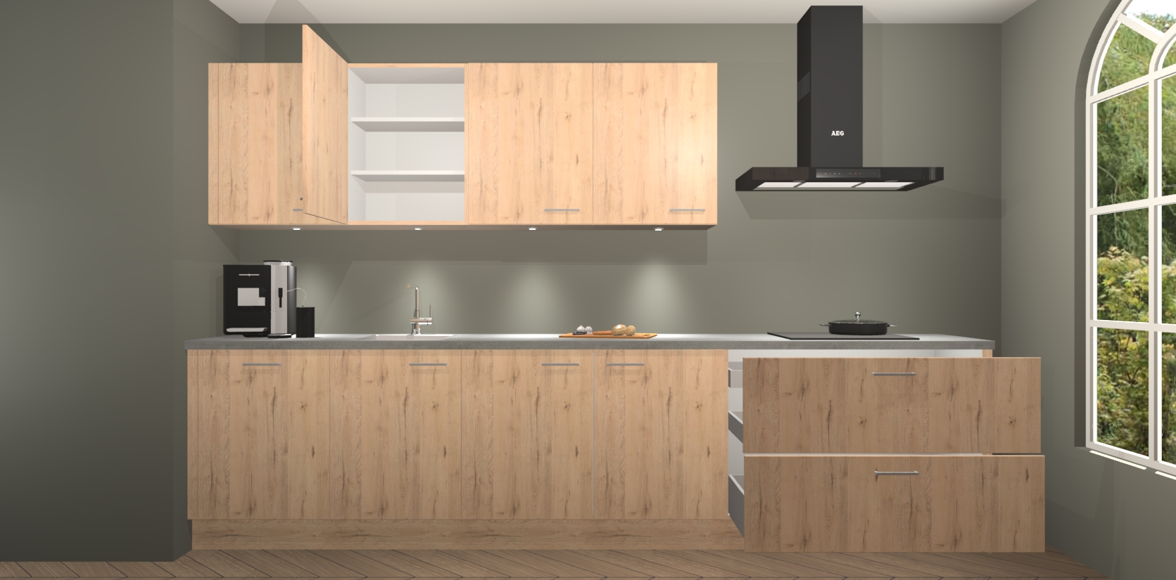 De softclose deuren openen en sluiten is ook heel eenvoudig - geniet van een moeiteloze keukenervaring, zelfs als er kinderen rondlopen. Voor extra gemak bij het plaatsen van uw bestelling bieden we ook een upgrade naar een kookplaat met geïntegreerde afzuiging.