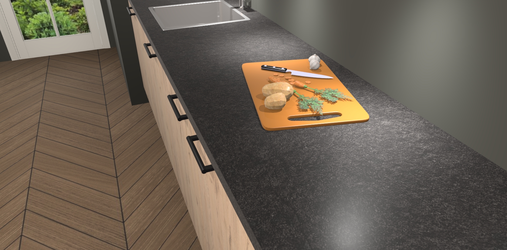 - Bij een hoekwerkblad zijn de hoeken in gevreesd en op maat gemaakt