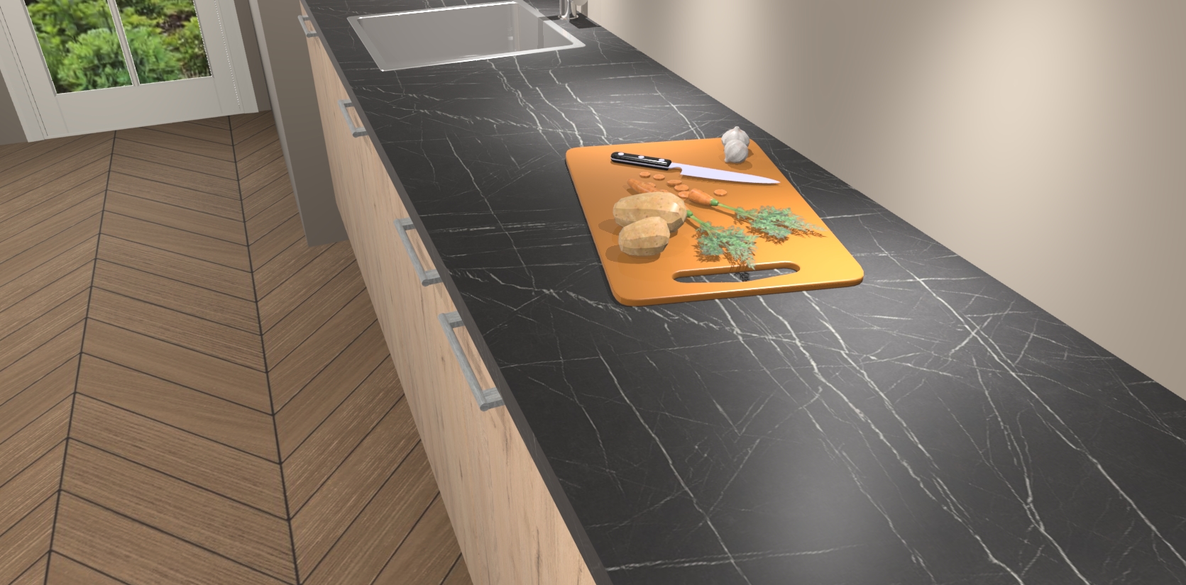 • Bij een hoekwerkblad zijn de hoeken in gevreesd en op maat gemaakt