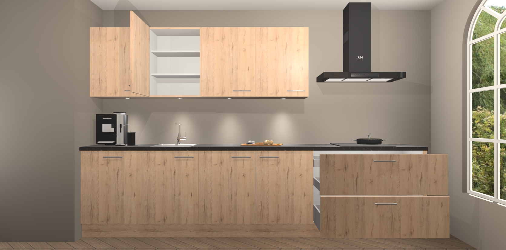 De softclose deuren openen en sluiten is ook heel eenvoudig - geniet van een moeiteloze keukenervaring, zelfs als er kinderen rondlopen. Voor extra gemak bij het plaatsen van uw bestelling bieden we ook een upgrade naar een kookplaat met geïntegreerde afzuiging.