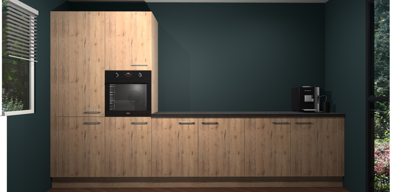 Welkom bij de Madera Natuur keuken Lusaka. Deze prachtige keuken zal de komende jaren het middelpunt van de belangstelling in uw huis zijn. Uitgerust met vijf inbouwapparaten komt u nooit kookgereedschap tekort. Bovendien geeft de warme houtlook elke ruimte een uitnodigende en tijdloze uitstraling.