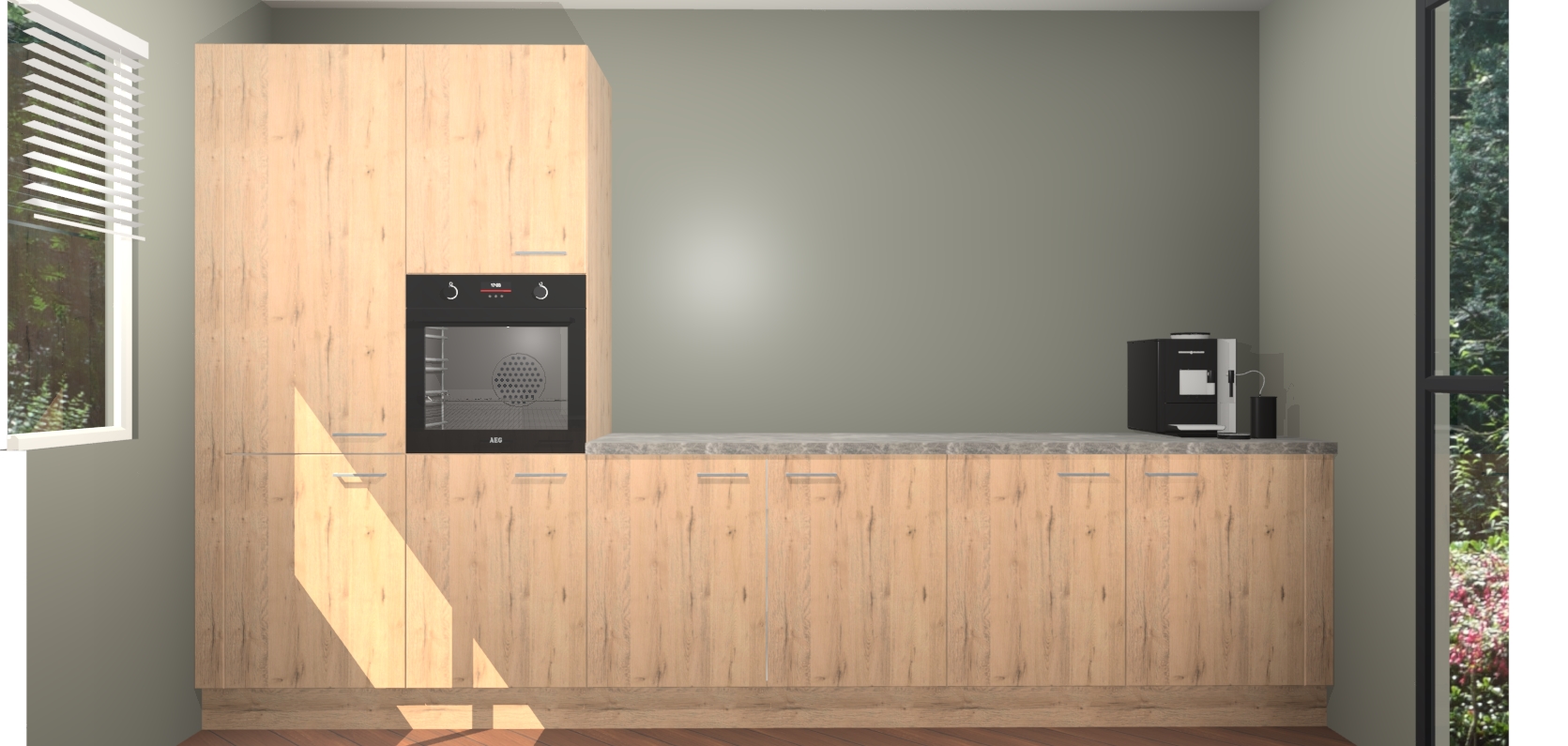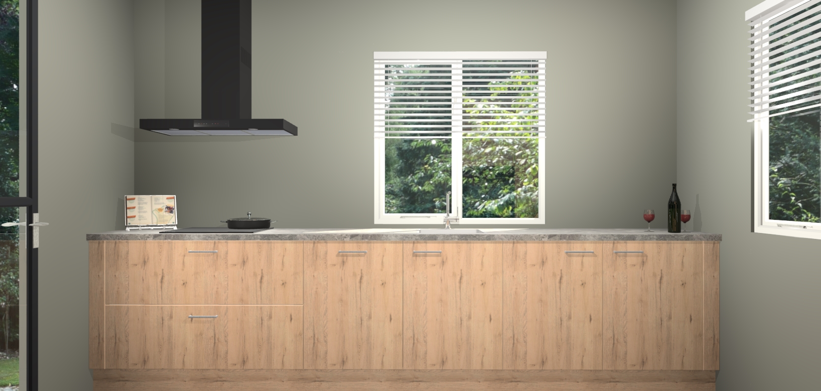 Welkom bij de Madera Natuur keuken Lusaka. Deze prachtige keuken zal de komende jaren het middelpunt van de belangstelling in uw huis zijn. Uitgerust met vijf inbouwapparaten komt u nooit kookgereedschap tekort. Bovendien geeft de warme houtlook elke ruimte een uitnodigende en tijdloze uitstraling.