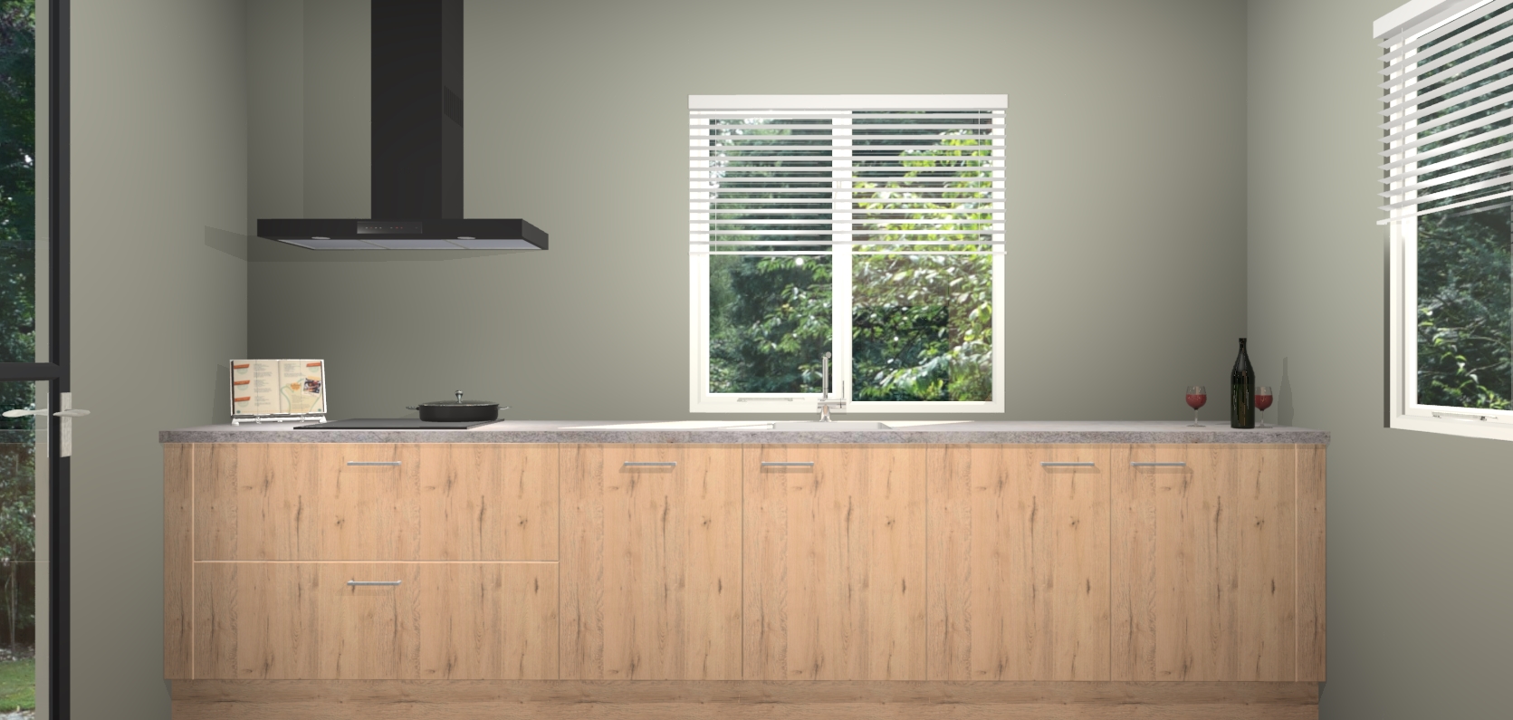 Welkom bij de Madera Natuur keuken Lusaka. Deze prachtige keuken zal de komende jaren het middelpunt van de belangstelling in uw huis zijn. Uitgerust met vijf inbouwapparaten komt u nooit kookgereedschap tekort. Bovendien geeft de warme houtlook elke ruimte een uitnodigende en tijdloze uitstraling.