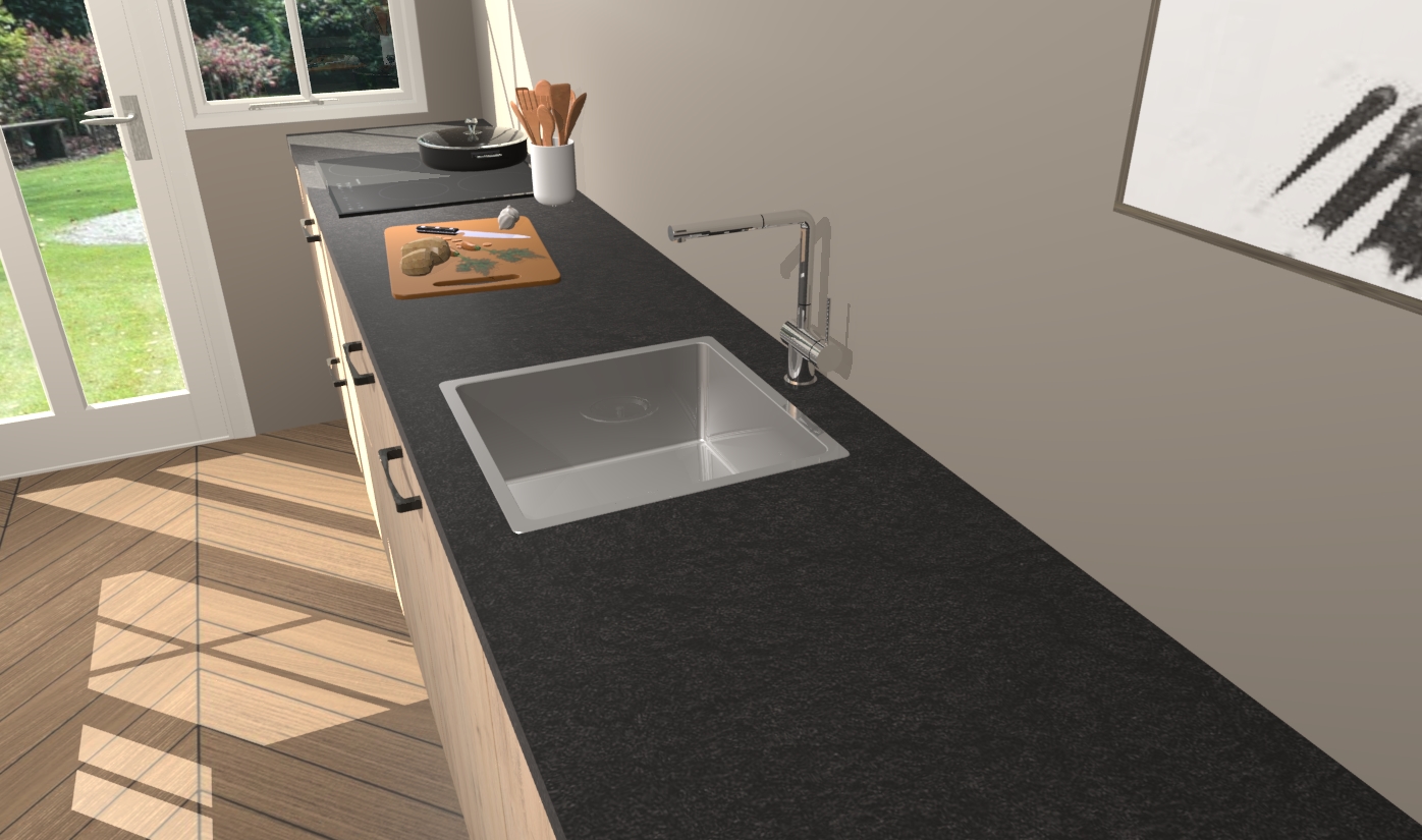 - Bij een hoekwerkblad zijn de hoeken in gevreesd en op maat gemaakt