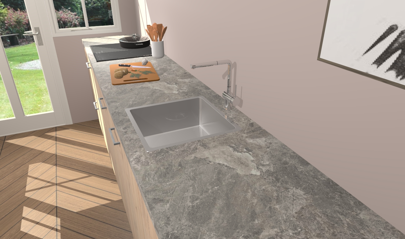 • Bij een hoekwerkblad zijn de hoeken in gevreesd en op maat gemaakt