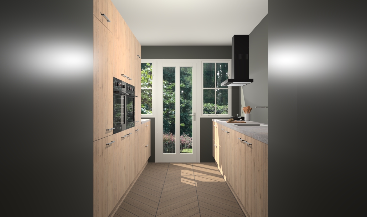 Een stijlvolle en praktische keuken als deze mag gezien worden. Dankzij de prachtige madera natuur matte afwerking wordt de keuken gemakkelijk het middelpunt van uw huis - hij ziet er geweldig uit onder allerlei lichtomstandigheden, van dag tot nacht!