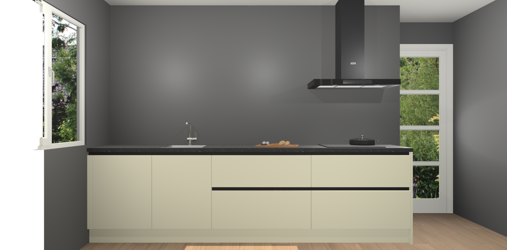 De softclose deuren openen en sluiten is ook heel eenvoudig - geniet van een moeiteloze keukenervaring, zelfs als er kinderen rondlopen. Voor extra gemak bij het plaatsen van uw bestelling bieden we ook een upgrade naar een kookplaat met geïntegreerde afzuiging.