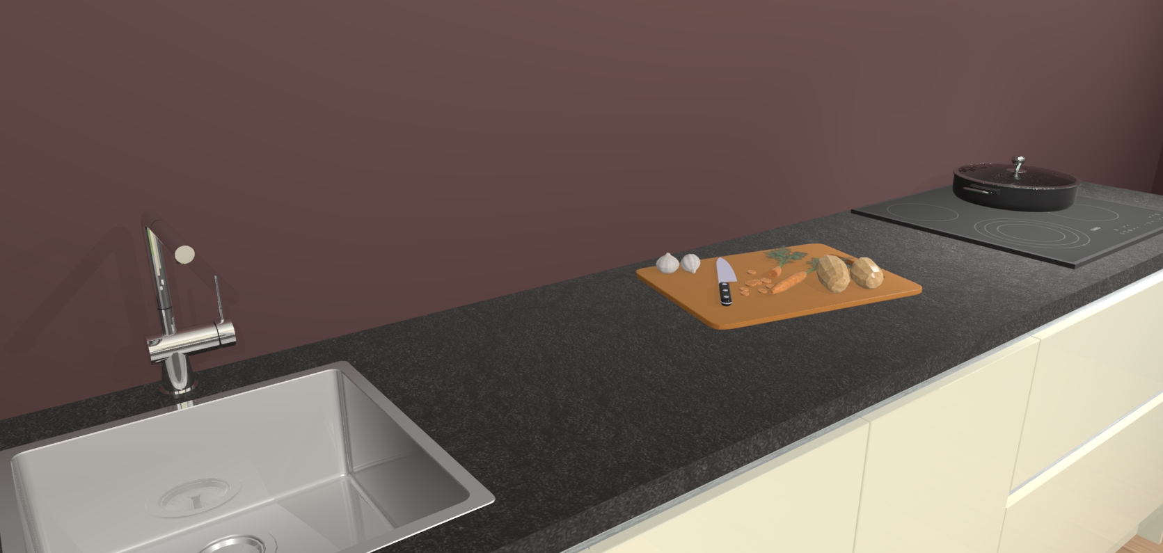 - Uitsparing van kookplaat, spoelbak en kraan dient u zelf te verzorgen.