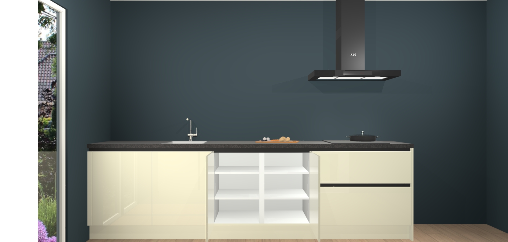 De softclose deuren openen en sluiten is ook heel eenvoudig - geniet van een moeiteloze keukenervaring, zelfs als er kinderen rondlopen. Voor extra gemak bij het plaatsen van uw bestelling bieden we ook een upgrade naar een kookplaat met geïntegreerde afzuiging.