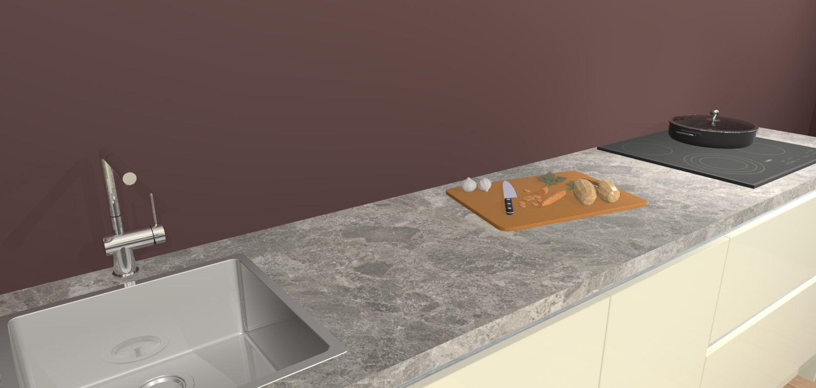 - Uitsparing van kookplaat, spoelbak en kraan dient u zelf te verzorgen.