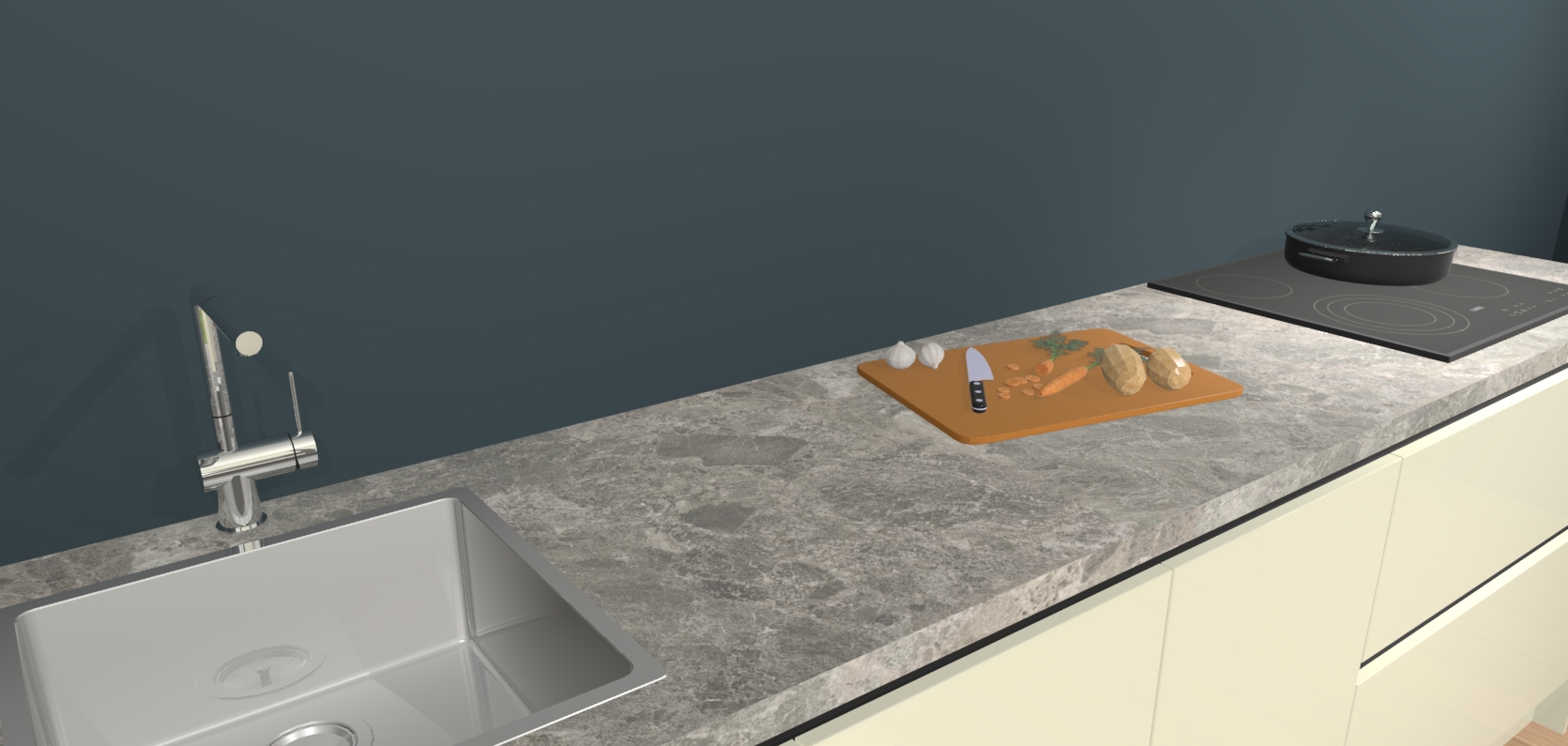 - Uitsparing van kookplaat, spoelbak en kraan dient u zelf te verzorgen.