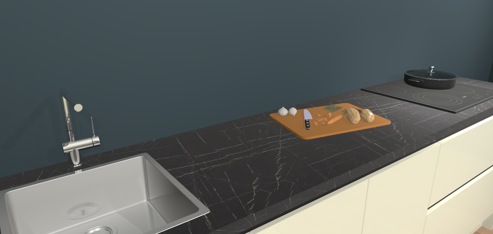 - Uitsparing van kookplaat, spoelbak en kraan dient u zelf te verzorgen.