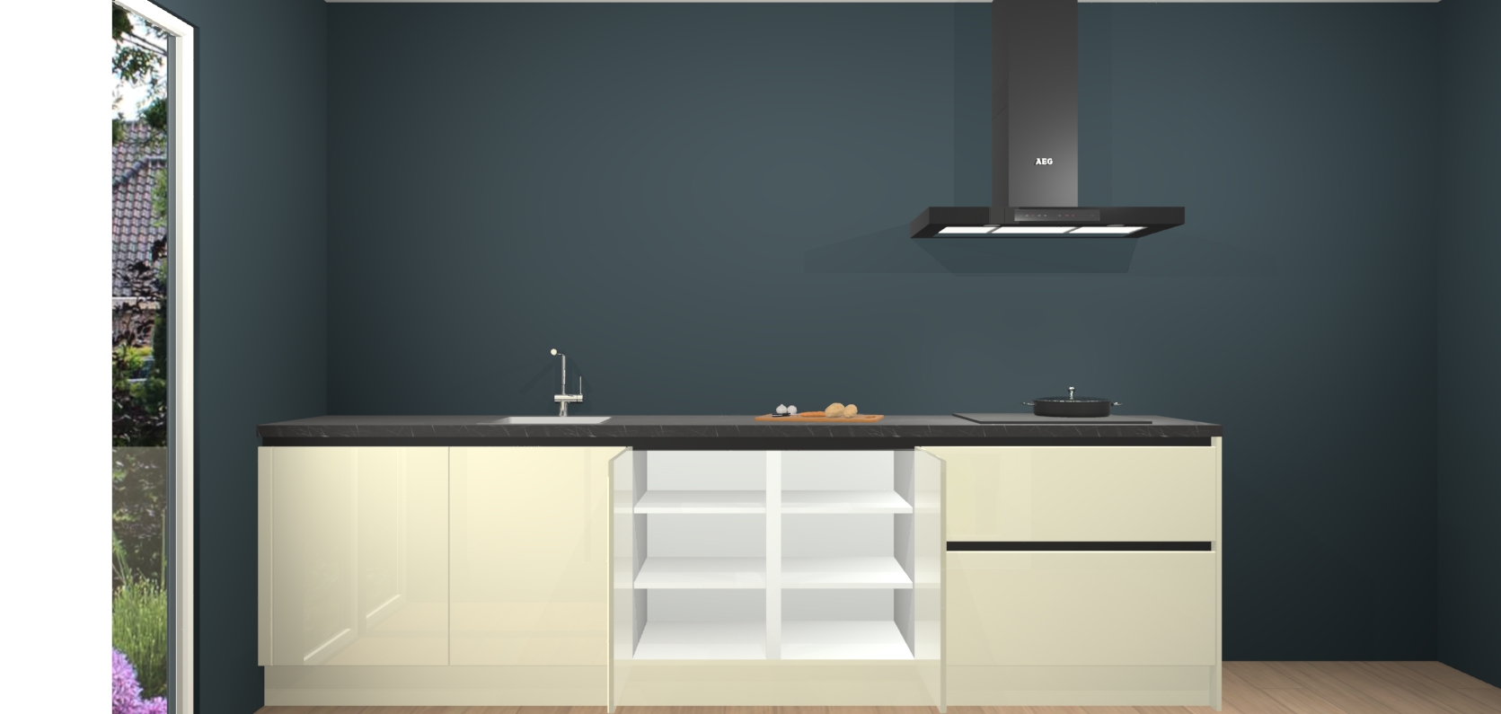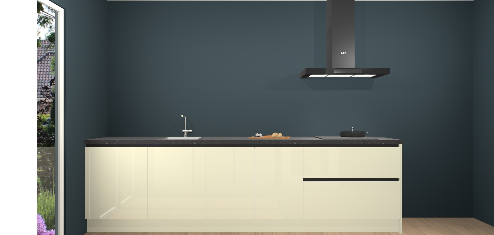 De softclose deuren openen en sluiten is ook heel eenvoudig - geniet van een moeiteloze keukenervaring, zelfs als er kinderen rondlopen. Voor extra gemak bij het plaatsen van uw bestelling bieden we ook een upgrade naar een kookplaat met geïntegreerde afzuiging.