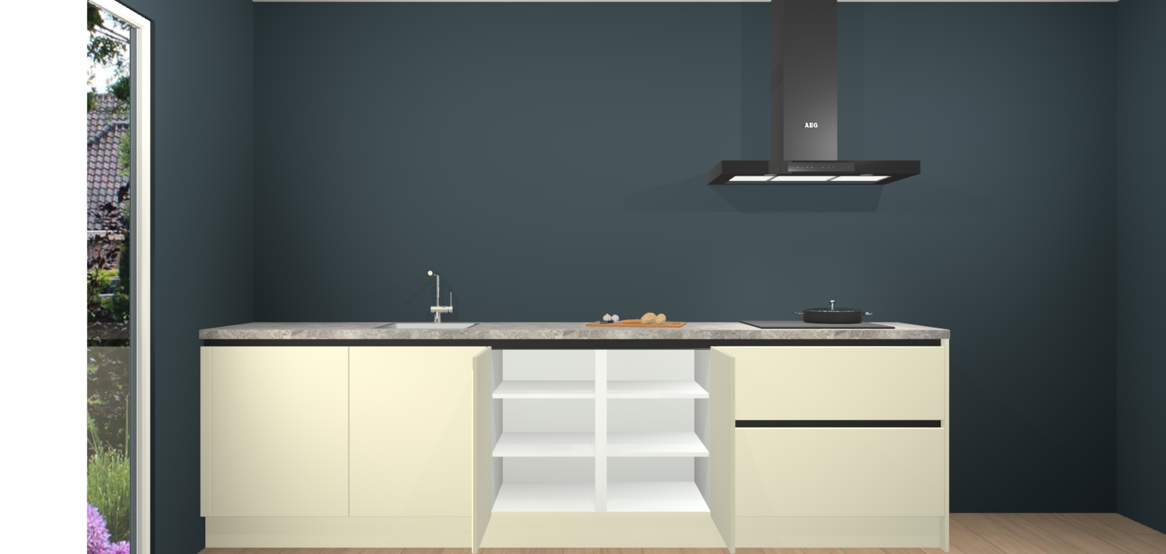 De softclose deuren openen en sluiten is ook heel eenvoudig - geniet van een moeiteloze keukenervaring, zelfs als er kinderen rondlopen. Voor extra gemak bij het plaatsen van uw bestelling bieden we ook een upgrade naar een kookplaat met geïntegreerde afzuiging.