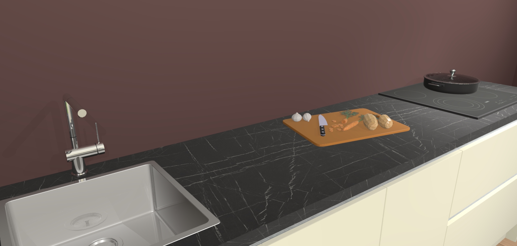 - Uitsparing van kookplaat, spoelbak en kraan dient u zelf te verzorgen.