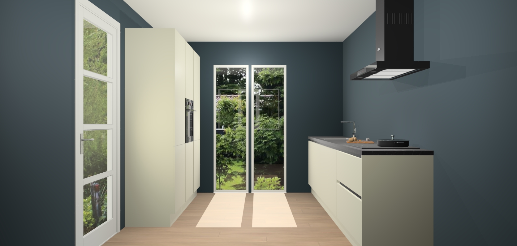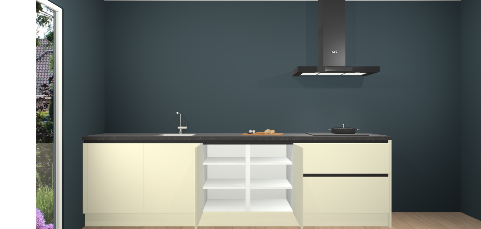 De softclose deuren openen en sluiten is ook heel eenvoudig - geniet van een moeiteloze keukenervaring, zelfs als er kinderen rondlopen. Voor extra gemak bij het plaatsen van uw bestelling bieden we ook een upgrade naar een kookplaat met geïntegreerde afzuiging.
