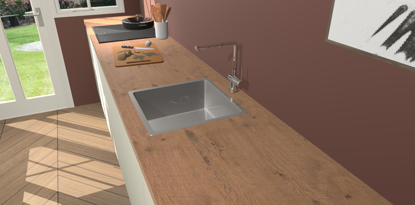 - Bij een hoekwerkblad zijn de hoeken in gevreesd en op maat gemaakt