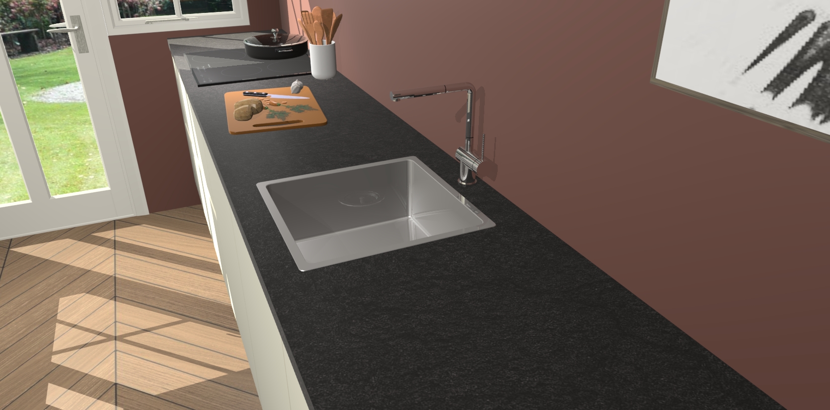 - Uitsparing van kookplaat, spoelbak en kraan dient u zelf te verzorgen.