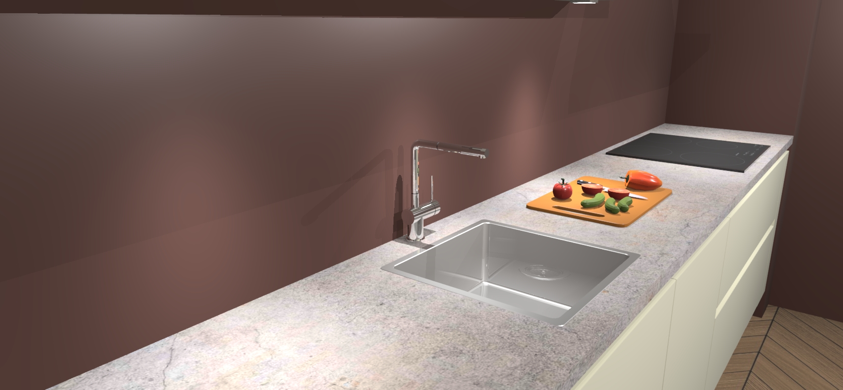 - Uitsparing van kookplaat, spoelbak en kraan dient u zelf te verzorgen.