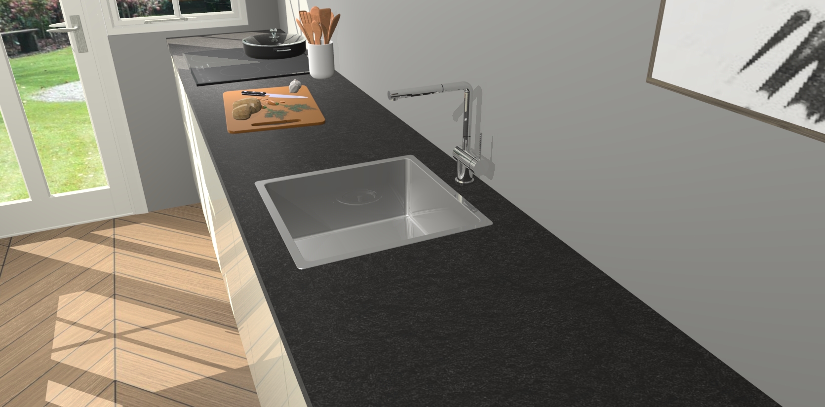 - Uitsparing van kookplaat, spoelbak en kraan dient u zelf te verzorgen.