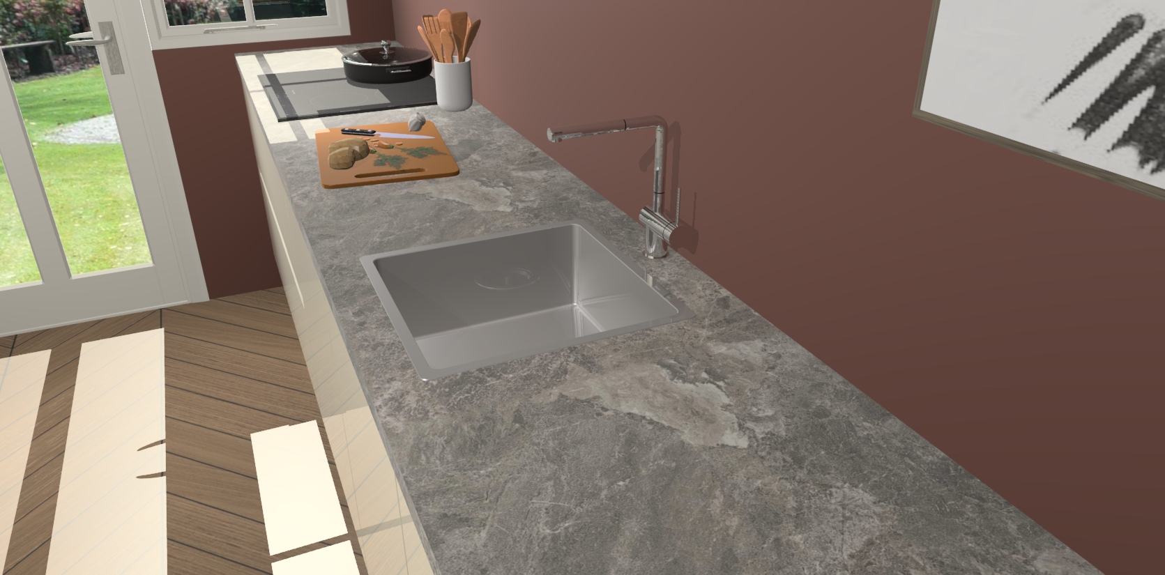 - Uitsparing van kookplaat, spoelbak en kraan dient u zelf te verzorgen.