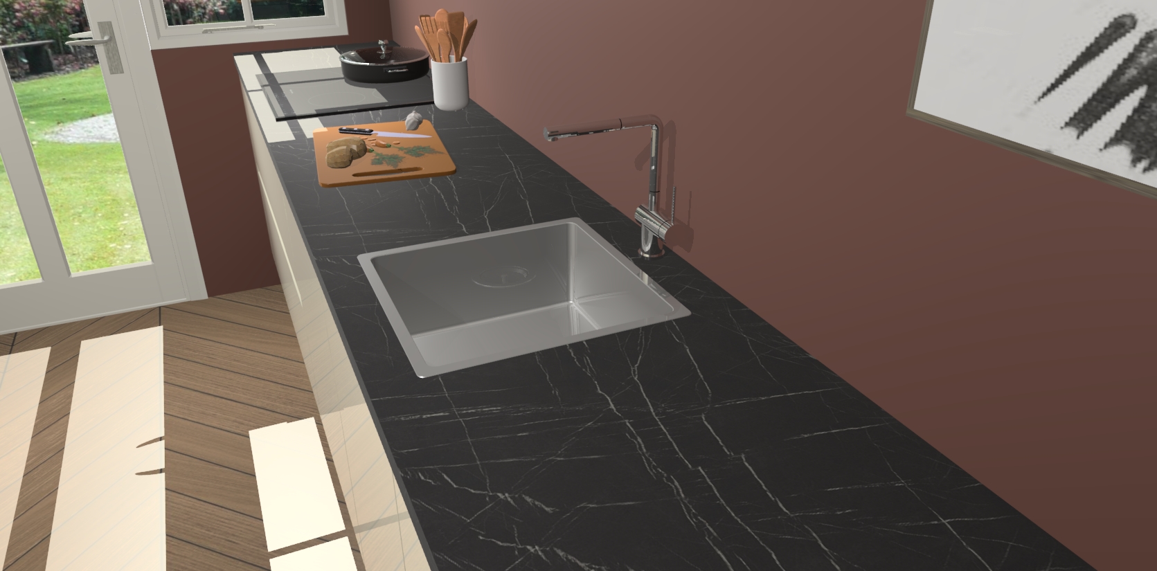 - Bij een hoekwerkblad zijn de hoeken in gevreesd en op maat gemaakt