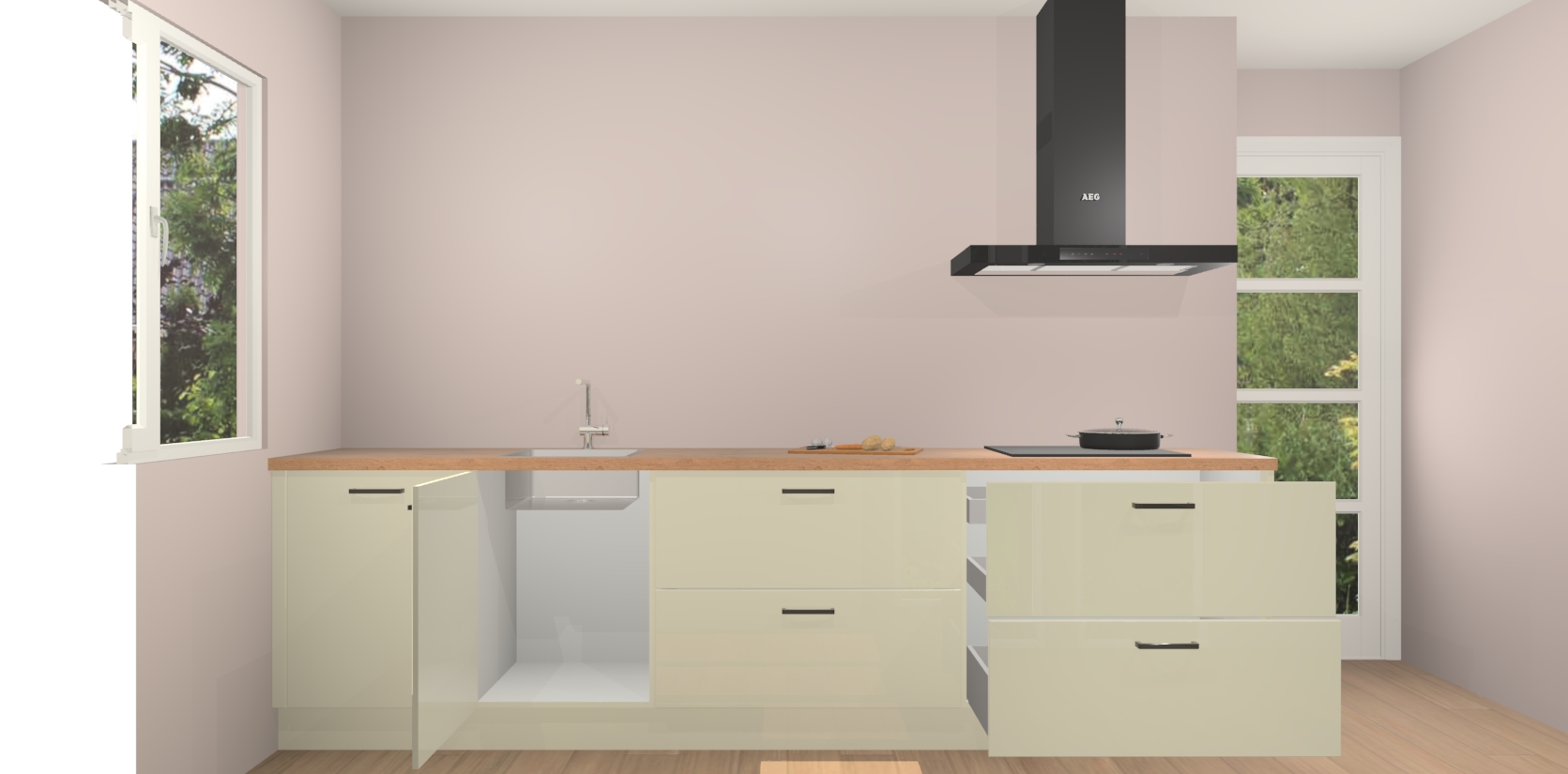 De softclose deuren openen en sluiten is ook heel eenvoudig - geniet van een moeiteloze keukenervaring, zelfs als er kinderen rondlopen. Voor extra gemak bij het plaatsen van uw bestelling bieden we ook een upgrade naar een kookplaat met geïntegreerde afzuiging.
