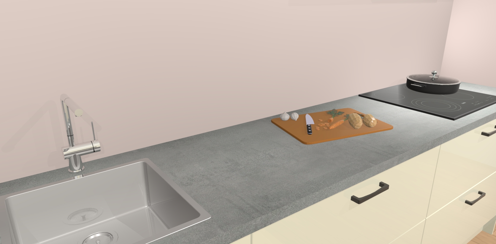 Inclusief plinten, stelpoten en werkblad