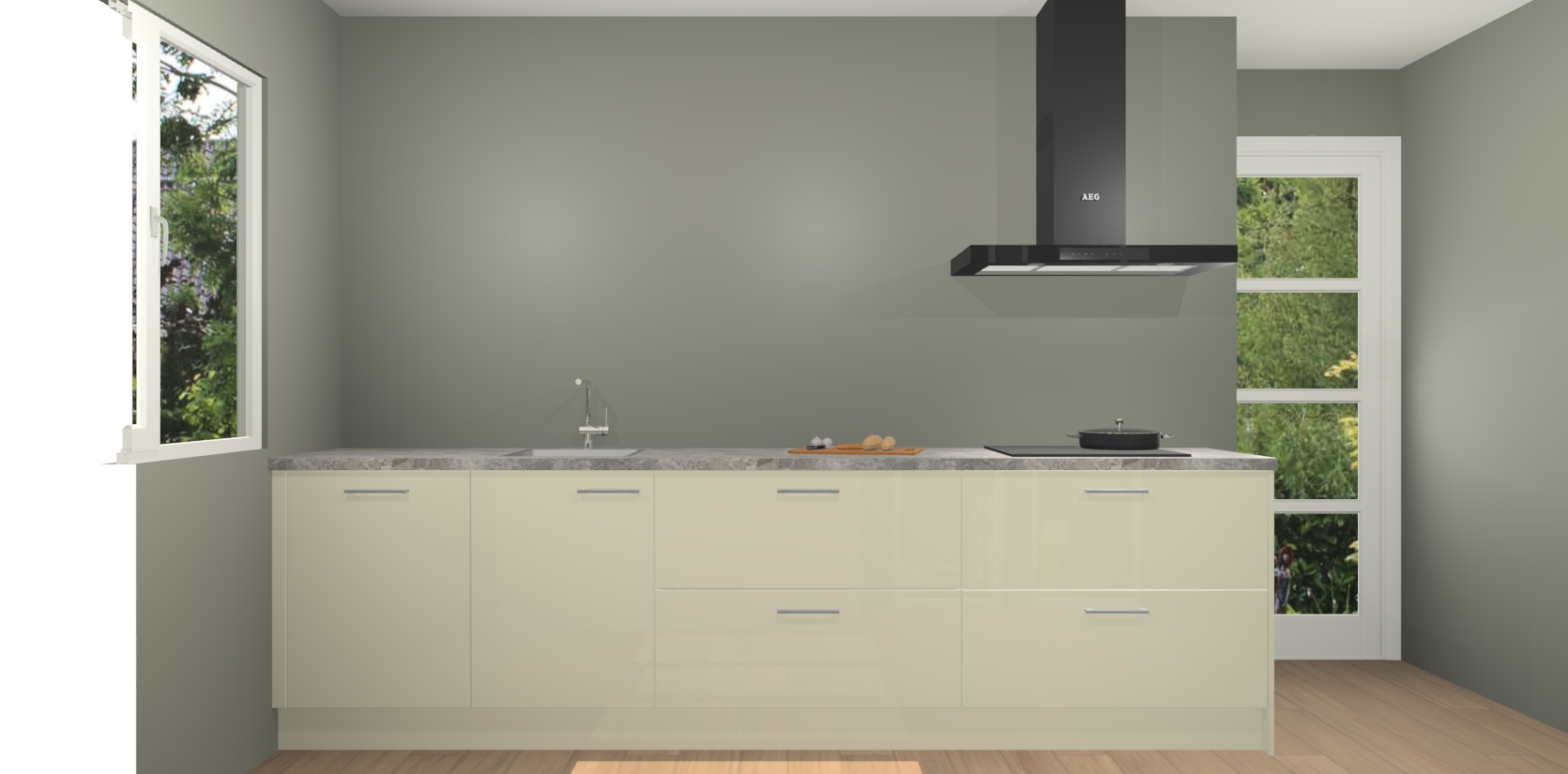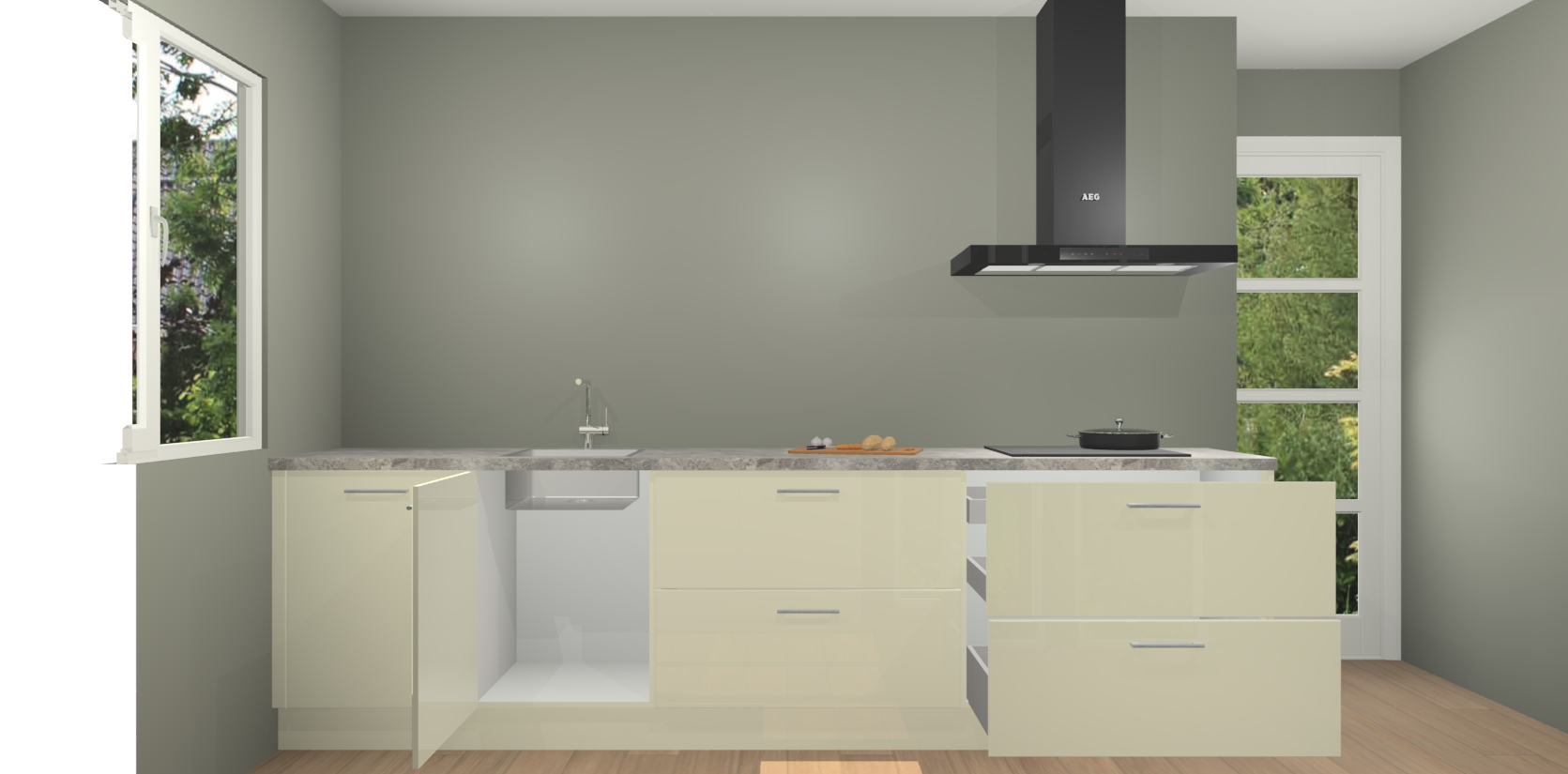 De softclose deuren openen en sluiten is ook heel eenvoudig - geniet van een moeiteloze keukenervaring, zelfs als er kinderen rondlopen. Voor extra gemak bij het plaatsen van uw bestelling bieden we ook een upgrade naar een kookplaat met geïntegreerde afzuiging.
