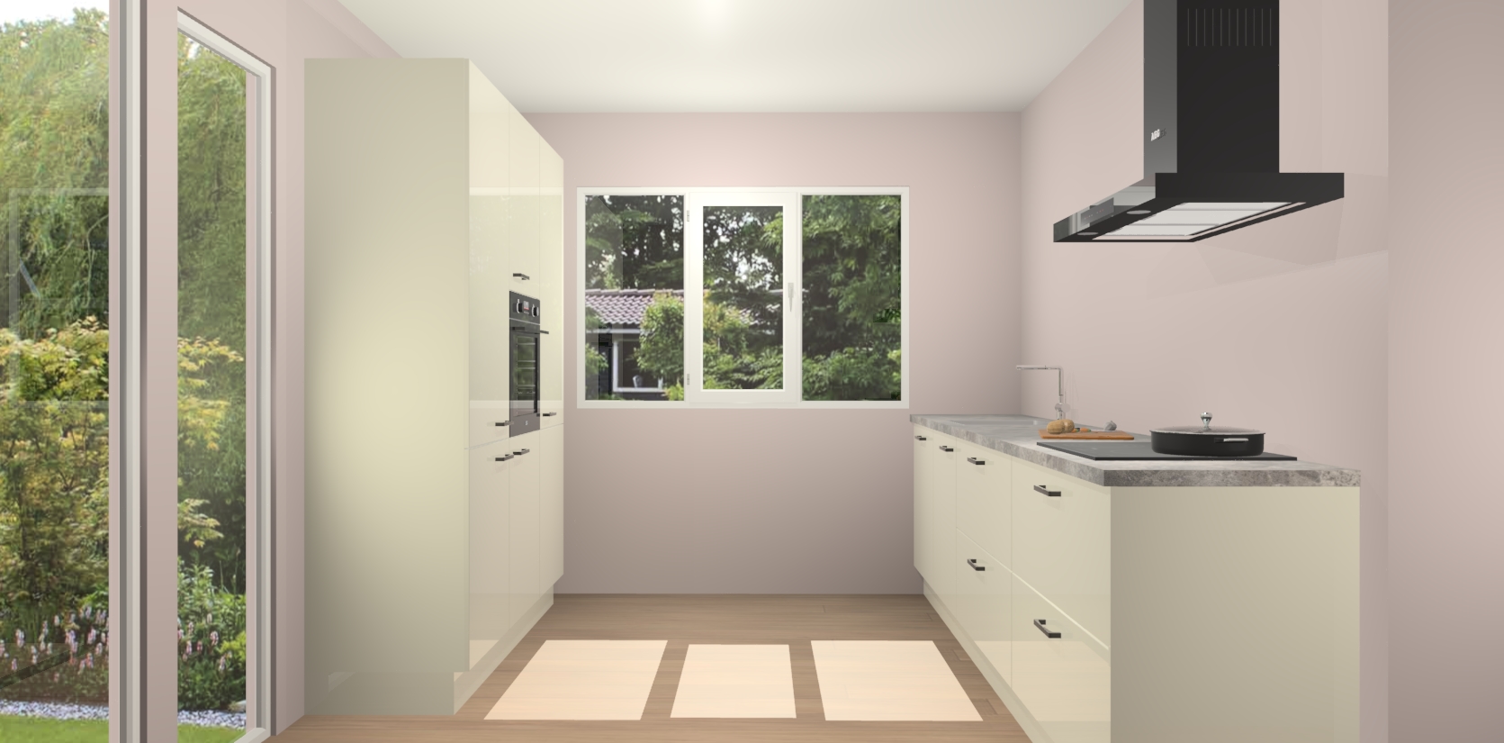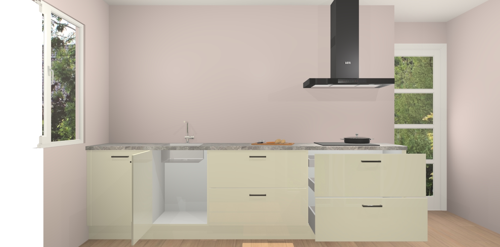 De softclose deuren openen en sluiten is ook heel eenvoudig - geniet van een moeiteloze keukenervaring, zelfs als er kinderen rondlopen. Voor extra gemak bij het plaatsen van uw bestelling bieden we ook een upgrade naar een kookplaat met geïntegreerde afzuiging.