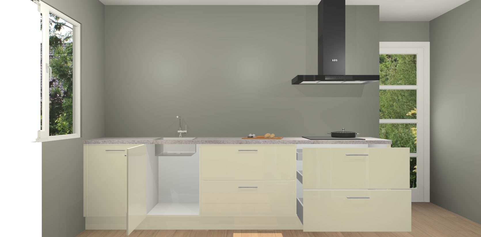 De softclose deuren openen en sluiten is ook heel eenvoudig - geniet van een moeiteloze keukenervaring, zelfs als er kinderen rondlopen. Voor extra gemak bij het plaatsen van uw bestelling bieden we ook een upgrade naar een kookplaat met geïntegreerde afzuiging.