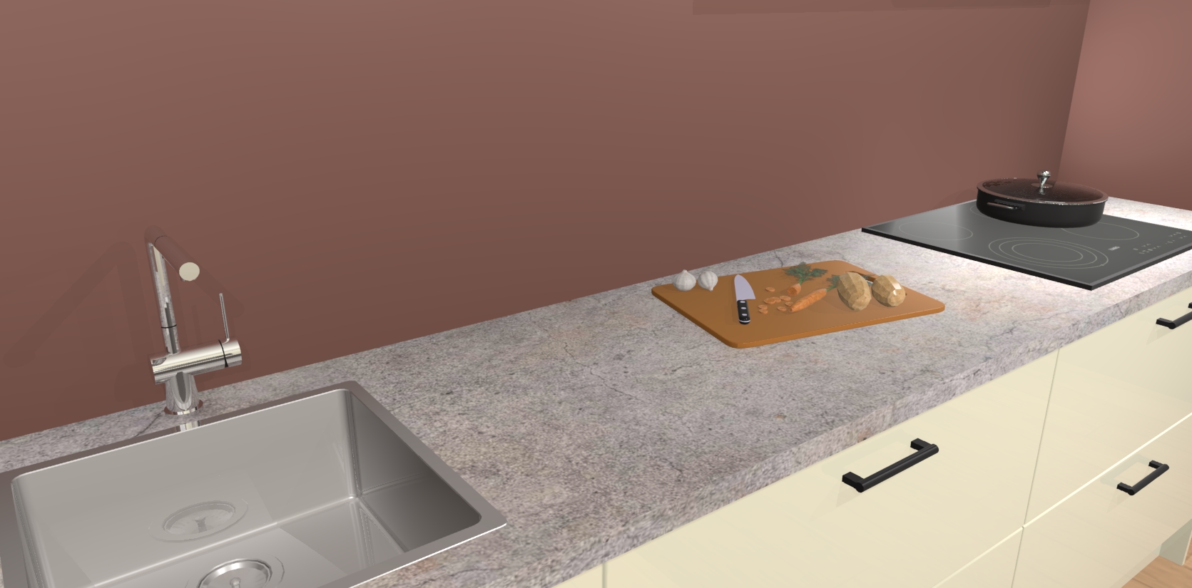 - Uitsparing van kookplaat, spoelbak en kraan dient u zelf te verzorgen.