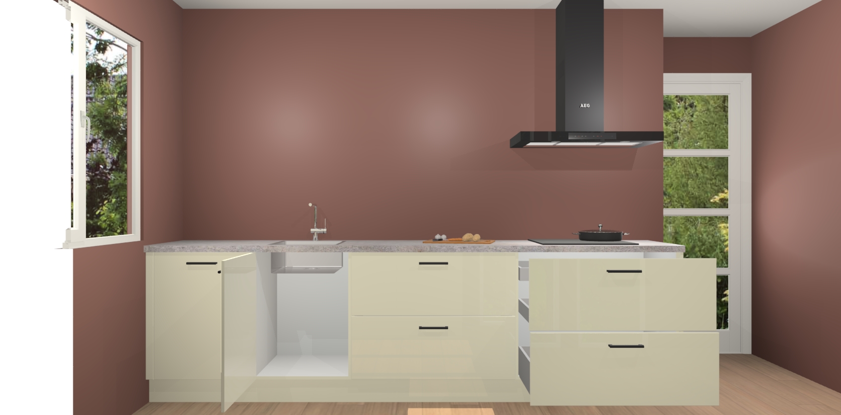 Inclusief plinten, stelpoten en werkblad