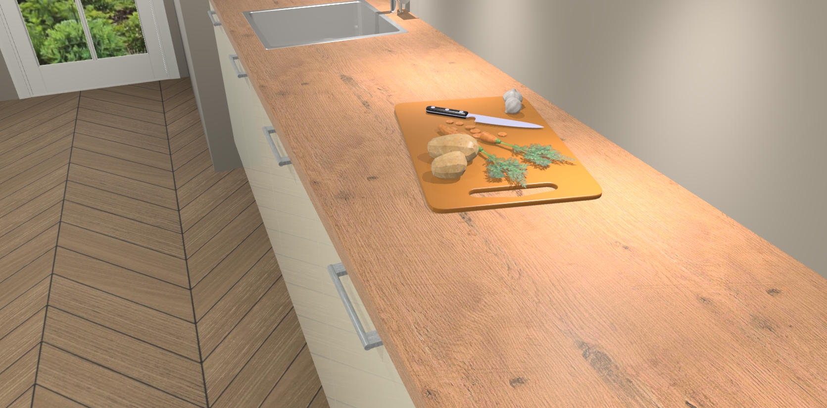 • Bij een hoekwerkblad zijn de hoeken in gevreesd en op maat gemaakt