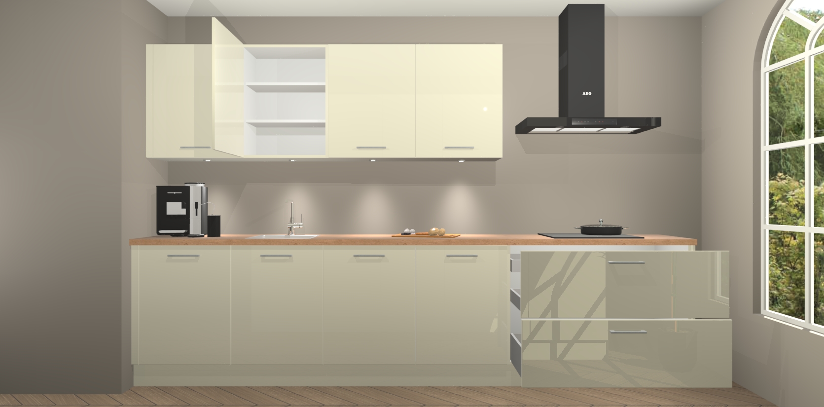 De softclose deuren openen en sluiten is ook heel eenvoudig - geniet van een moeiteloze keukenervaring, zelfs als er kinderen rondlopen. Voor extra gemak bij het plaatsen van uw bestelling bieden we ook een upgrade naar een kookplaat met geïntegreerde afzuiging.