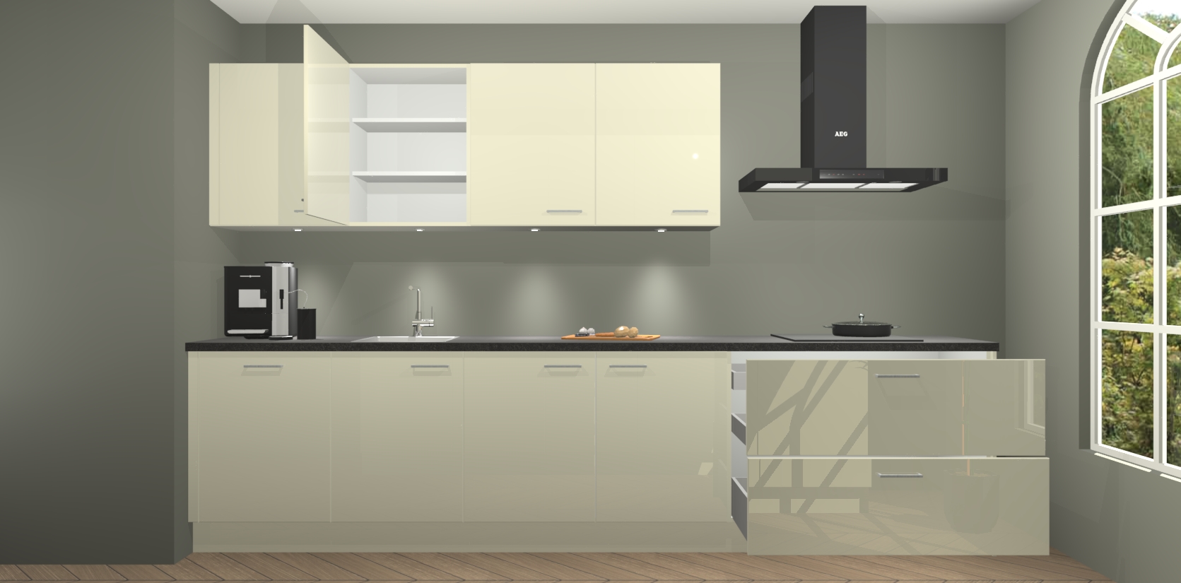 De softclose deuren openen en sluiten is ook heel eenvoudig - geniet van een moeiteloze keukenervaring, zelfs als er kinderen rondlopen. Voor extra gemak bij het plaatsen van uw bestelling bieden we ook een upgrade naar een kookplaat met geïntegreerde afzuiging.