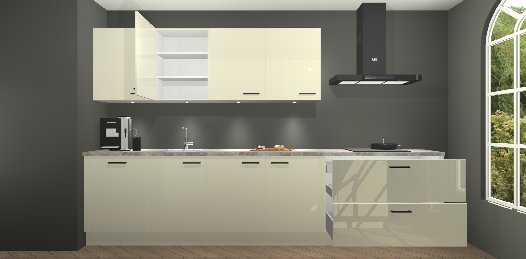 De softclose deuren openen en sluiten is ook heel eenvoudig - geniet van een moeiteloze keukenervaring, zelfs als er kinderen rondlopen. Voor extra gemak bij het plaatsen van uw bestelling bieden we ook een upgrade naar een kookplaat met geïntegreerde afzuiging.