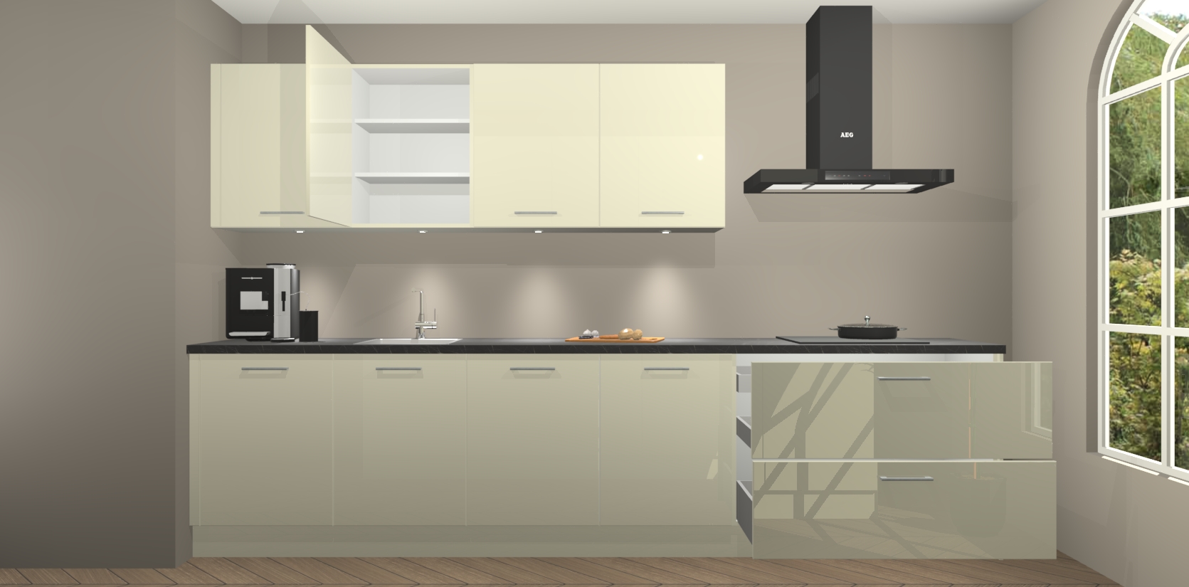 De softclose deuren openen en sluiten is ook heel eenvoudig - geniet van een moeiteloze keukenervaring, zelfs als er kinderen rondlopen. Voor extra gemak bij het plaatsen van uw bestelling bieden we ook een upgrade naar een kookplaat met geïntegreerde afzuiging.