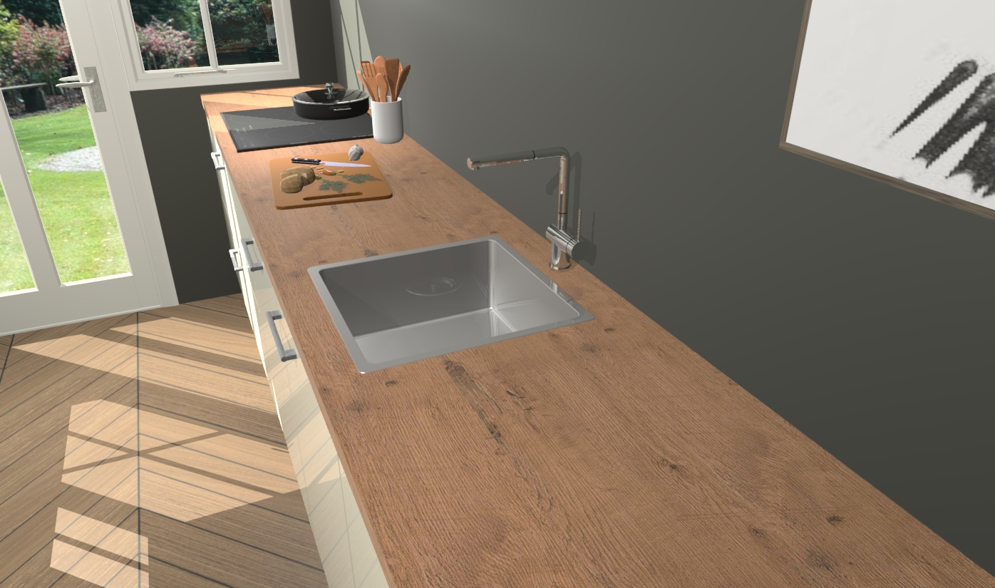 - Bij een hoekwerkblad zijn de hoeken in gevreesd en op maat gemaakt