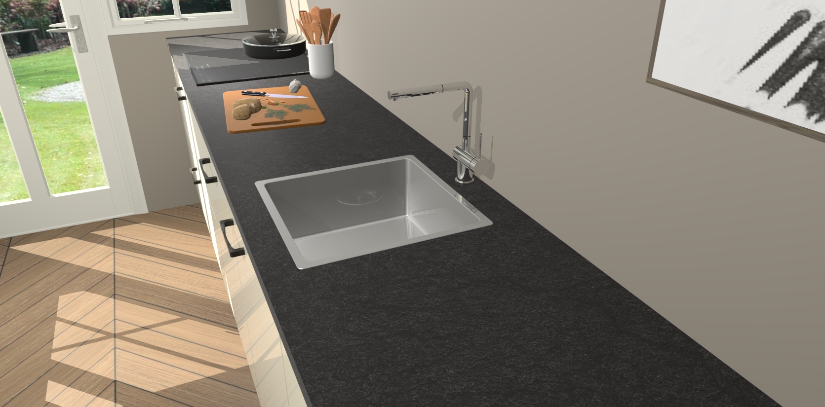 • Bij een hoekwerkblad zijn de hoeken in gevreesd en op maat gemaakt