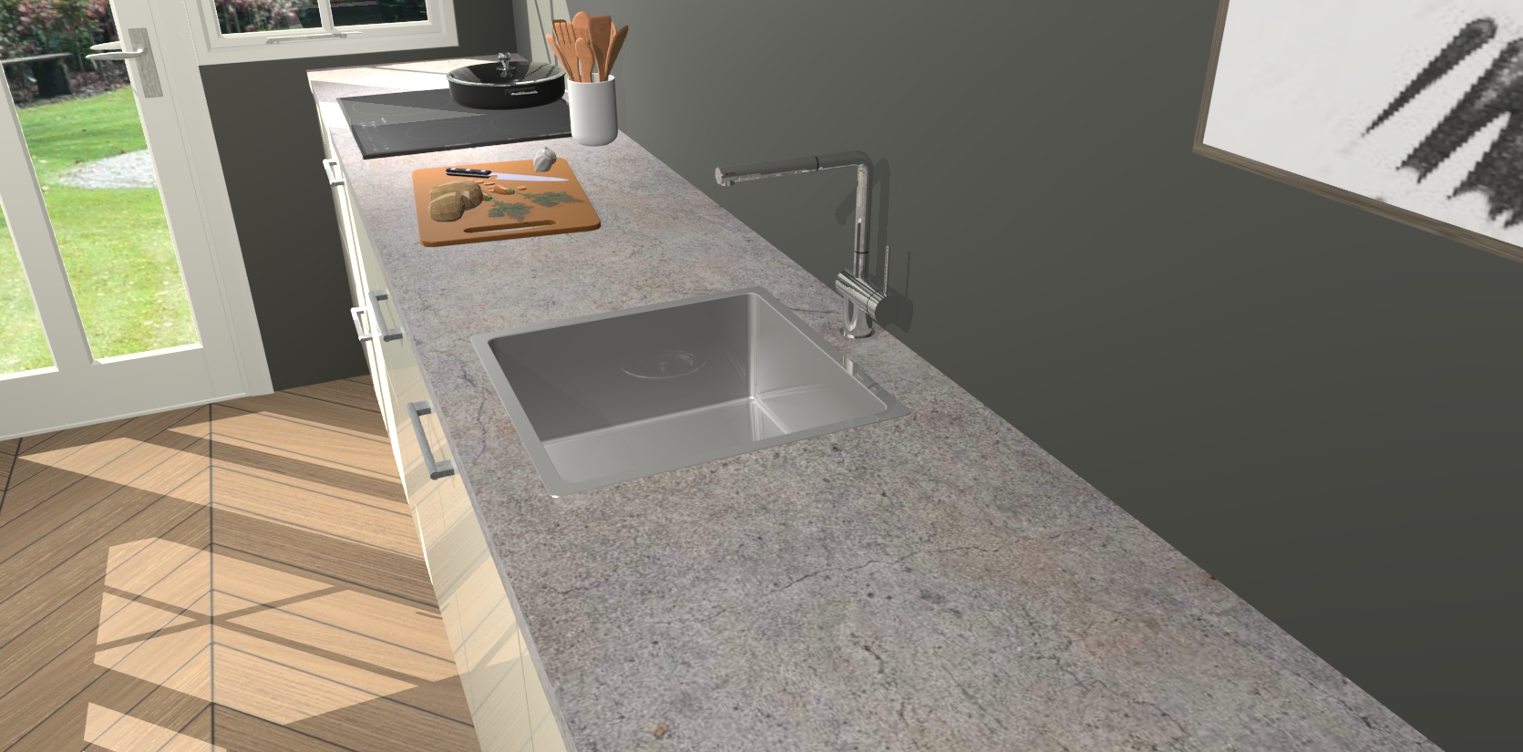 - Bij een hoekwerkblad zijn de hoeken in gevreesd en op maat gemaakt