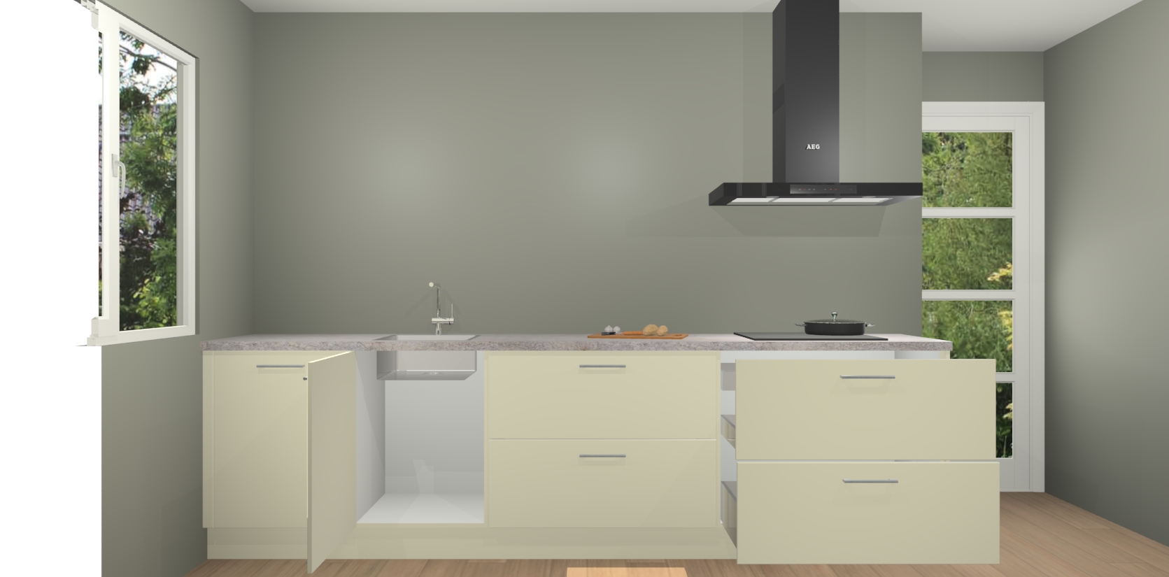 De softclose deuren openen en sluiten is ook heel eenvoudig - geniet van een moeiteloze keukenervaring, zelfs als er kinderen rondlopen. Voor extra gemak bij het plaatsen van uw bestelling bieden we ook een upgrade naar een kookplaat met geïntegreerde afzuiging.