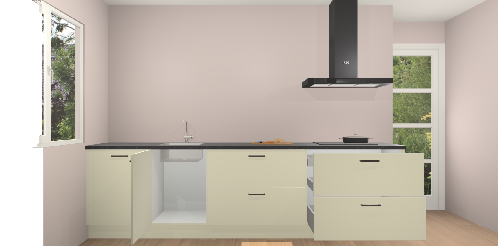 De softclose deuren openen en sluiten is ook heel eenvoudig - geniet van een moeiteloze keukenervaring, zelfs als er kinderen rondlopen. Voor extra gemak bij het plaatsen van uw bestelling bieden we ook een upgrade naar een kookplaat met geïntegreerde afzuiging.