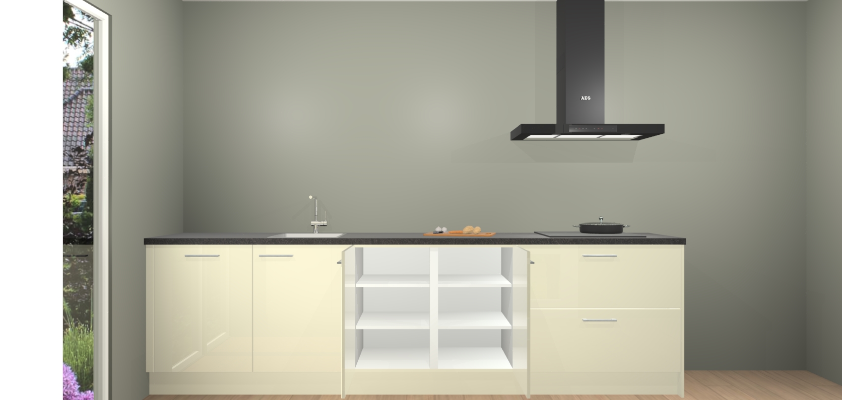 De softclose deuren openen en sluiten is ook heel eenvoudig - geniet van een moeiteloze keukenervaring, zelfs als er kinderen rondlopen. Voor extra gemak bij het plaatsen van uw bestelling bieden we ook een upgrade naar een kookplaat met geïntegreerde afzuiging.