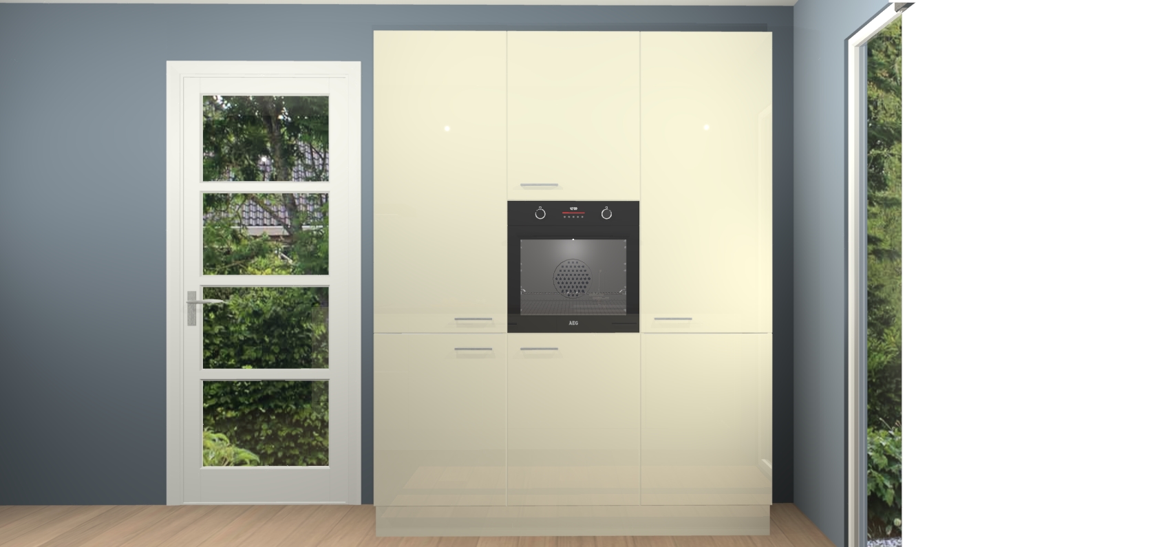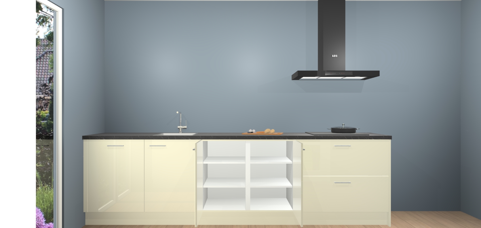De softclose deuren openen en sluiten is ook heel eenvoudig - geniet van een moeiteloze keukenervaring, zelfs als er kinderen rondlopen. Voor extra gemak bij het plaatsen van uw bestelling bieden we ook een upgrade naar een kookplaat met geïntegreerde afzuiging.