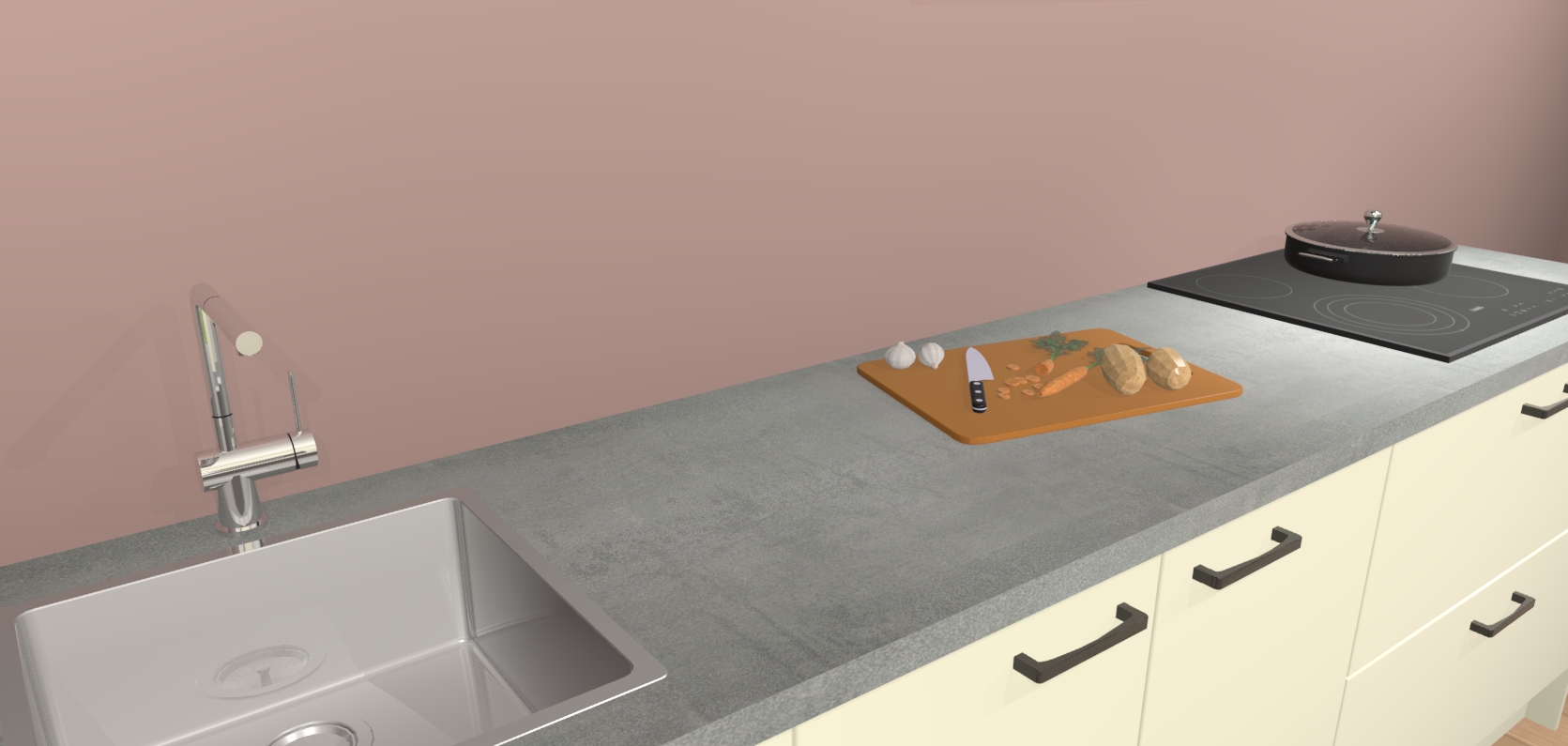 Inclusief plinten, stelpoten en werkblad