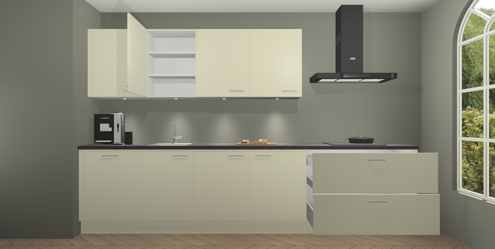 De softclose deuren openen en sluiten is ook heel eenvoudig - geniet van een moeiteloze keukenervaring, zelfs als er kinderen rondlopen. Voor extra gemak bij het plaatsen van uw bestelling bieden we ook een upgrade naar een kookplaat met geïntegreerde afzuiging.