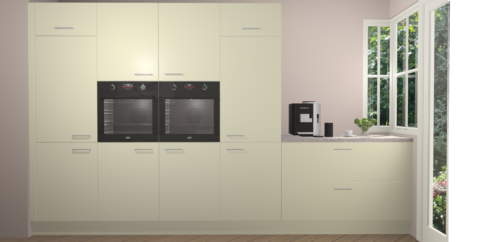 Een stijlvolle en praktische keuken als deze mag gezien worden. Dankzij de prachtige magnolia matte afwerking wordt de keuken gemakkelijk het middelpunt van uw huis - hij ziet er geweldig uit onder allerlei lichtomstandigheden, van dag tot nacht!