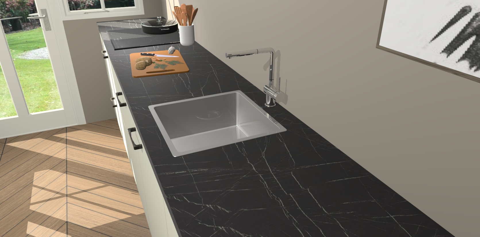 • Bij een hoekwerkblad zijn de hoeken in gevreesd en op maat gemaakt